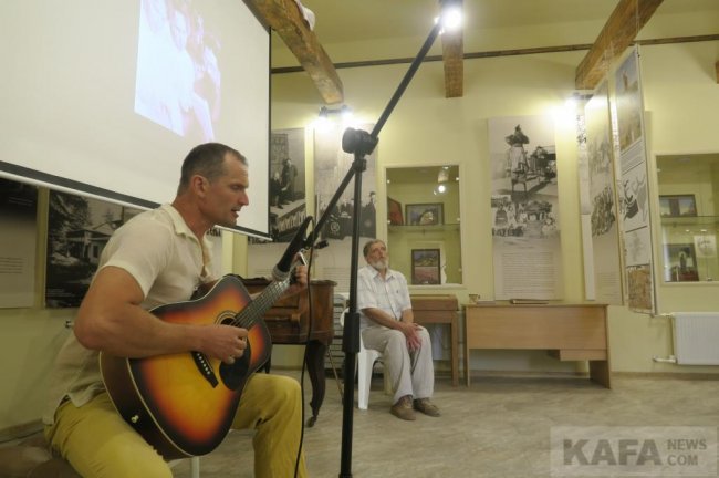 Музыкальную часть встречи обеспечил феодосийский бард Игорь Вялов. Поэтико-музыкальный дуэт Спиритус – Вялов уже знаком, как местной публике, так и гостям нашего города. И на этот раз собравшихся порадовали песни в исполнении Игоря, написанные на стихи Владимира Борисовича. Иногда дополненные авторским припевом, некоторые на музыку еще одного феодосийского дарования – композитора Ольги Аветисовой.