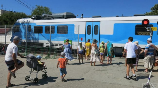 Пока так неторопливо встречает. Эдуард Воблин Пляж полный Но большинство загорает, а не купается Дистанция между загорающими, вроде бы, выдерживается А вот среди желающих попасть в музей - не очень Птицы радостно отмечают праздник у ливневки А вот цветы на набережной продолжают быть гордостью города На пляже появились информативные стенды И я чуть не упал от неожиданности: на пляже таки появился спасатель А вот и новый поезд, едущий во Владиславовку Ну и куда же без машинок детских. Кстати, а кто их эксплуатирует?