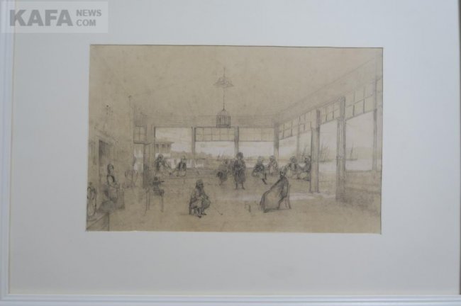 Ныне здесь представлена 21 графическая работа и 28 фотографий Айвазовского, а также снимки его дома и старой Феодосии той эпохи. Эта выставка интересна как минимум тем, что она достаточно полно характеризует Айвазовского- графика. Тут и его первые зарисовки пером, и работы карандашом, и знаменитые произведения автора на тонированной бумаге в довольно-таки сложной технике «папье-пелле». Так называют выцарапывание иглой верхнего слоя бумаги, фрагмента рисунка для придания ему объемности. Таким образом, Айвазовский добивался реалистичного эффекта пены на гребнях морских волн.