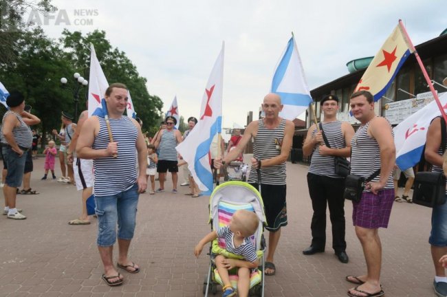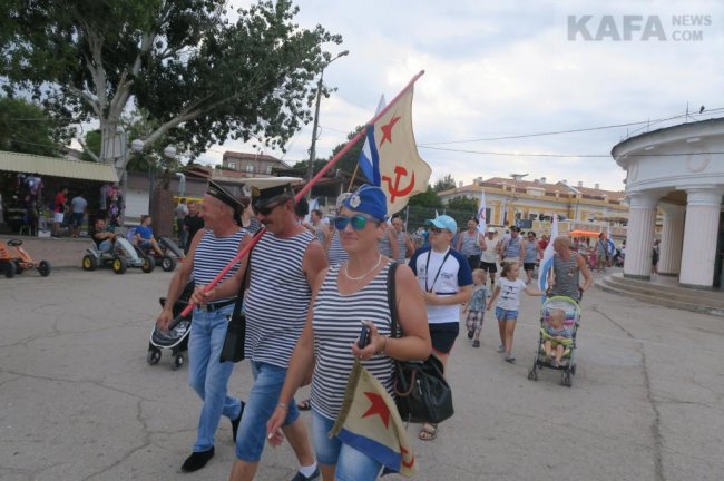 По пути торжественного шествия участники неформального парада многократно провозглашали: «ВМФ! Ура! Ура! Ура!» и прочие военно-морские лозунги и речевки. А от желающих сфотографироваться с моряками буквально не было отбоя. Промежуточным пунктом военно-морского парада стал памятник «Феодосийскому десанту», после небольшого привала поход продолжился до памятника «Героям-подводникам». После чего празднование Дня ВМФ горожанами перешло в произвольную форму. Народная традиция отмечать праздник военных моряков была соблюдена неукоснительно.