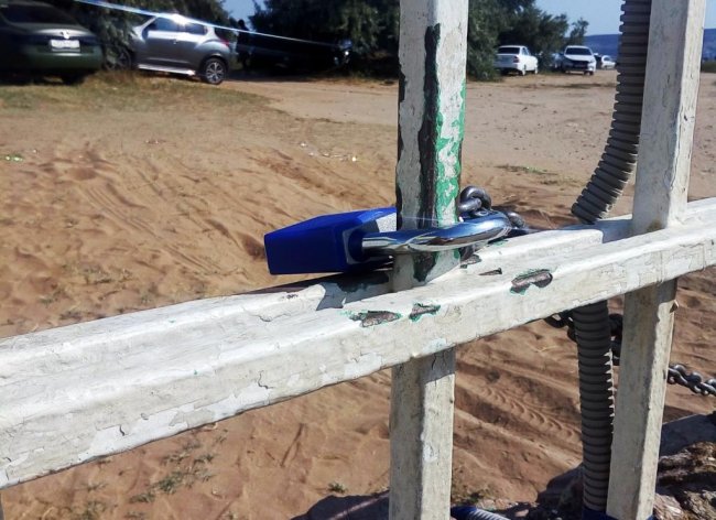 С некоторых пор некие граждане при въезде на общественный пляж возле «Кораблика», сдвинули бетонные блоки, повесили цепь и собирают по 200 руб с каждой въезжающей машины.