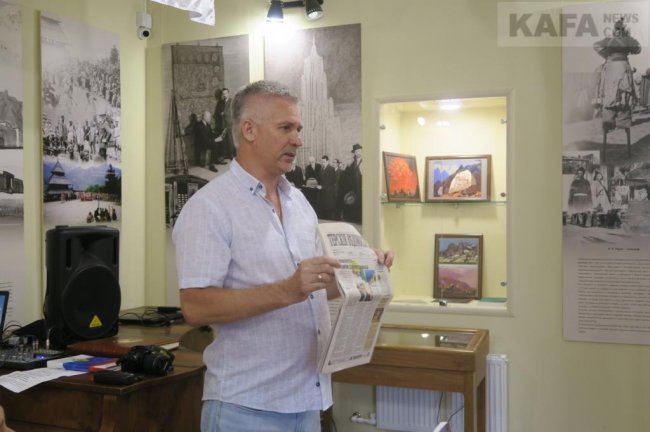 В цветаевском музее состоялась долгожданная презентация Х ежегодного литературного сборника феодосийских писателей. Константин Лепер Презентация «Литературной Феодосии-2020» (видео) Презентация «Литературной Феодосии-2020» (видео) Презентация «Литературной Феодосии-2020» (видео) Презентация «Литературной Феодосии-2020» (видео) Презентация «Литературной Феодосии-2020» (видео) Презентация «Литературной Феодосии-2020» (видео) Презентация «Литературной Феодосии-2020» (видео) Презентация «Литературной Феодосии-2020» (видео) Презентация «Литературной Феодосии-2020» (видео) Презентация «Литературной Феодосии-2020» (видео) Презентация «Литературной Феодосии-2020» (видео) Презентация «Литературной Феодосии-2020» (видео) Презентация «Литературной Феодосии-2020» (видео) Презентация «Литературной Феодосии-2020» (видео) Презентация «Литературной Феодосии-2020» (видео) Презентация «Литературной Феодосии-2020» (видео) Презентация «Литературной Феодосии-2020» (видео) Презентация «Литературной Феодосии-2020» (видео) Презентация «Литературной Феодосии-2020» (видео) Презентация «Литературной Феодосии-2020» (видео) В субботу, 1 августа в музее Марины и Анастасии Цветаевых прошла презентация ежегодного альманаха «Литературная Феодосия – 2020». О выходе в свет этого, уже десятого по счету, литературного ежегодника «Кафа» ранее рассказывала своим читателям. Выпушенный накануне 9 мая сборник авторских произведений как раз и был посвящен семидесяти пятилетию Победы советского народа в Великой Отечественной войне. Также не забыта здесь и другая круглая дата, напрямую связанная с Феодосией - 200-летие визита в наш город «Солнца русской поэзии», великого Александра Сергеевича Пушкина. И вот наконец-то состоялась обещанная публичная презентация юбилейного выпуска «Литературной Феодосии». Ведущие вечера председатель Союза русских писателей Восточного Крыма Владимир Смирнов и руководитель феодосийского филиала Крымского отделения Союза писателей России Наталья Ищенко поздравили своих коллег по творческому цеху с выходом очередного альманаха и, особенно, с появившейся возможностью представить его читателям «в живую». Здесь же были отмечены текущие достижения феодосийских литераторов, как то: публикации местных авторов в периодической печати, как региональной, так и федерального уровня. Наиболее отличившиеся собратья по литературе были удостоены медалей «За заслуги в культуре и искусстве», официальное награждение состоялось безотлагательно. Тут же торжественно было вручено удостоверение «новоиспеченному» члену Союза русских писателей Восточного Крыма Светлане Клинушкиной. А представителям библиотек Феодосии и Керчи передали необходимые количества экземпляров свежего литературного сборника. Ну, а далее началось то, чего так долго ждали герои «Литературной Феодосии 2020». А таковых нынче оказалось почти четыре десятка. Это, конечно же, и крымчане - члены Союза писателей России, Союза русских писателей Восточного Крыма, городского литобъединения «Киммерия», творческого объединения «Лукоморье», писатели из других регионов России (Владимирская область), а также из Израиля. И те, кого уже с нами нет: Семен Пивоваров, Георгий Свиридов, Сергей Чубко и Георгий Меликов. А присутствующие на презентации поэты и писатели с удовольствием использовали представившуюся, и нын