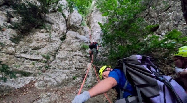 «Группа туристов была обнаружена на труднодоступном скальном участке. С помощью альпинисткого снаряжения отдыхающие из Москвы, были эвакуированы со скальных обрывов на плато. В дальнейшем спасенные выведены из горно-лесной зоны к личному автомобилю», - рассказал министр.