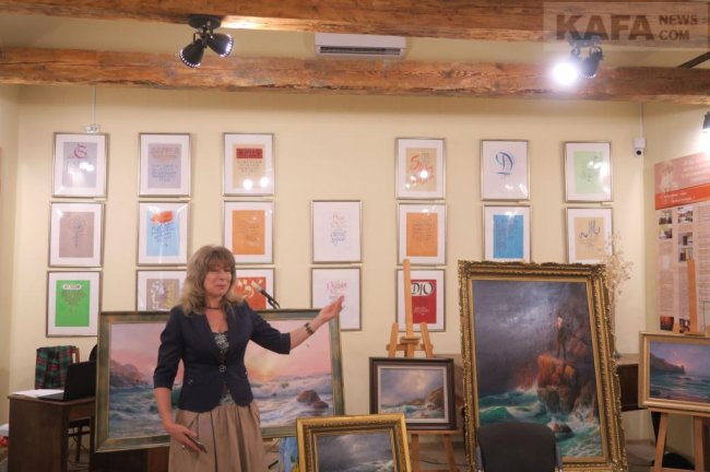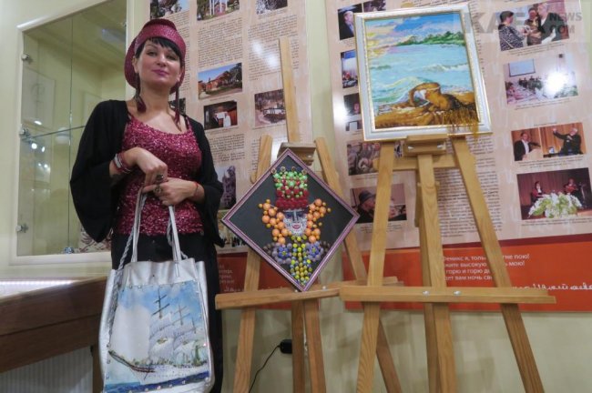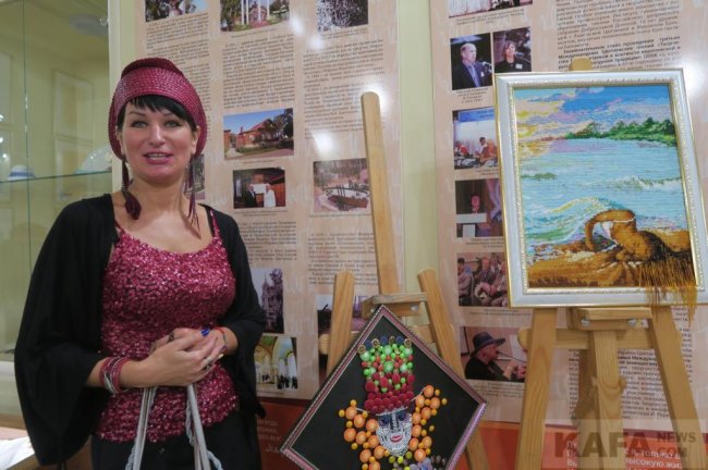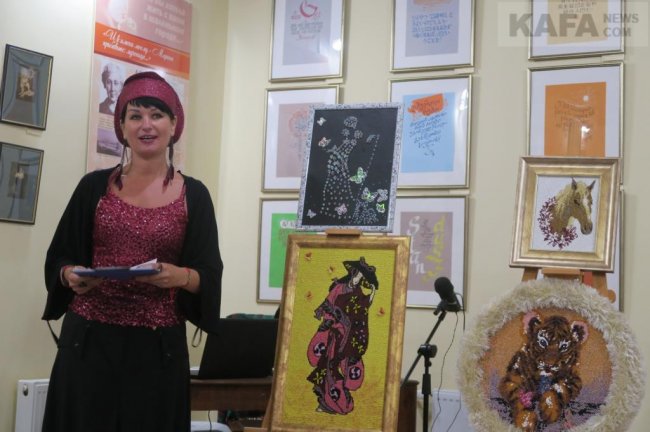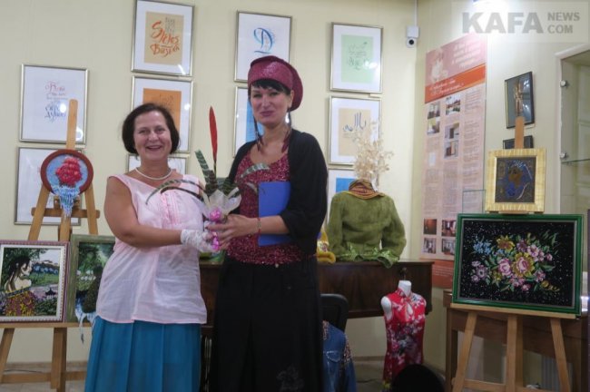 Далее на сцену вышла Оксана Вац. Оксана Александровна – один из самых молодых, но уже хорошо известных местной публике, поэтов и писателей Феодосии. А еще она художник, дизайнер одежды и заведующая городской библиотекой имени Панаса Мирного. Все творческие стороны своего таланта Оксана и продемонстрировала собравшимся. На фоне выставки своих творений – одежды, головных уборов, дамских сумок и предметов декоративно-прикладного искусства – любимица многих феодосийцев и гостей нашего города читала стихи, рассказывала об авторских художественных экспонатах и продолжающемся пути собственного развития. Зрители с умилением и благодарностью приняли выступление Оксаны Вац.