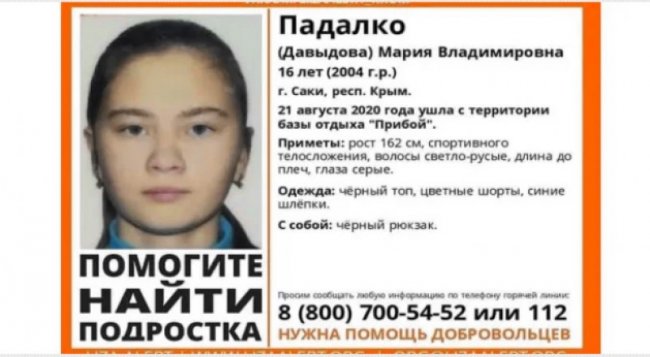 16-летнюю школьницу Марию Падалко, приехавшую в Крым со своей бабушкой, разыскивают в связи с ее бесследным исчезновением.