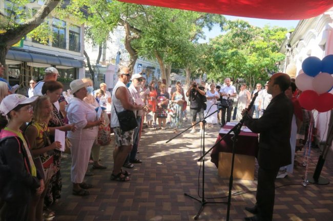Юбилейный фестиваль искусств, традиционно проводимый в день рождения Александра Грина, прошел с максимальным размахом, который возможен во время действия запрета на культурно-массовые мероприятия. Константин Лепер В Феодосии прошли XV «Встречи в Зурбагане» (видео) В Феодосии прошли XV «Встречи в Зурбагане» (видео) В Феодосии прошли XV «Встречи в Зурбагане» (видео) В Феодосии прошли XV «Встречи в Зурбагане» (видео) В Феодосии прошли XV «Встречи в Зурбагане» (видео) В Феодосии прошли XV «Встречи в Зурбагане» (видео) В Феодосии прошли XV «Встречи в Зурбагане» (видео) В Феодосии прошли XV «Встречи в Зурбагане» (видео) В Феодосии прошли XV «Встречи в Зурбагане» (видео) В Феодосии прошли XV «Встречи в Зурбагане» (видео) В Феодосии прошли XV «Встречи в Зурбагане» (видео) В Феодосии прошли XV «Встречи в Зурбагане» (видео) В Феодосии прошли XV «Встречи в Зурбагане» (видео) В Феодосии прошли XV «Встречи в Зурбагане» (видео) В Феодосии прошли XV «Встречи в Зурбагане» (видео) В Феодосии прошли XV «Встречи в Зурбагане» (видео) В Феодосии прошли XV «Встречи в Зурбагане» (видео) В Феодосии прошли XV «Встречи в Зурбагане» (видео) В Феодосии прошли XV «Встречи в Зурбагане» (видео) В Феодосии прошли XV «Встречи в Зурбагане» (видео) В воскресенье, 23 августа феодосийский литературно-мемориальный музей Александра Грина провел традиционный ежегодный фестиваль искусств «Встречи в Зурбагане». Это уже юбилейный, XV гриновский фестиваль, проводимый в день рождения великого романтика русской литературы. И у самого Александра Степановича ныне тоже юбилей – 140 лет со дня рождения. Да и музей Грина в Феодосии также совсем недавно отметил свой полувековой юбилей. Поэтому, даже не смотря на жесткие ограничения по проведению культурно-массовых мероприятий в городе, этот фестиваль не мог не состоятся. И прошел он весьма успешно, хотя и без привычного для «Зурбагана» размаха. Многие его мероприятия были переведены в онлайн-режим. Однако и немало интересных «живых» событий прошло в 140-й день рождения Александра Грина. Уже с самого утра перед гриновским музеем развивались знаменитые алые паруса, причем самые настоящие. Они были переданы дому Грина в дар из Санкт-Петербурга, где знаменитый праздник выпускников так и называется – «Алые паруса». И красавец-парусник «Tre Kronor» предоставляется в распоряжение вчерашним школьникам. Частичка его-то алого парусного вооружения и украсила «Встречи в Зурбагане». С момента открытия музея в день рождения Грина вход для посетителей по традиции был свободным. А на сценической площадке перед домом писателя развернулся фестивальный концерт. Виртуоз кларнета и любимец феодосийской публики Асан Халилов открыл праздничную программу задорным «Чардашем». Музыкальную эстафету принял петербуржский театр Ирины Коро в лице самой Ирины, проникновенно исполнившей под гитару романтическую песню. Еще об одном участнике фестиваля – самом юном – нужно сказать отдельно. Дебют пятилетней москвички Ножель Козлобаевой в «Зурбагане» произвел некоторый фурор. Маленькая актриса очаровательно преподнесла зрителям большую и вполне соответствующую гриновскому духу романтическую историю. Недаром Ножель уже в таком юном возрасте является лауреатом и победителем различных конкурсов актерских чтений, в том числе международных. А еще она снимается в телепередаче «Рису