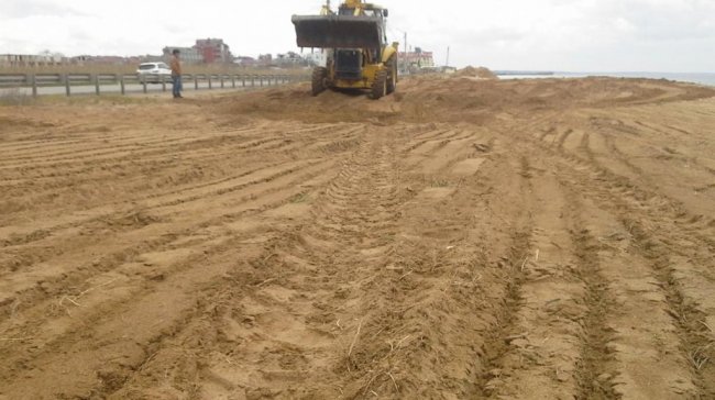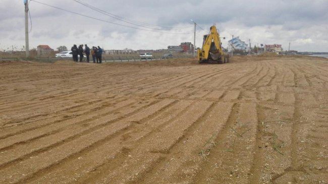 В конце марта на участке Золотого пляжа, напротив северо-восточной оконечности озера Аджиголь, перед въездом в поселок Приморский местные жители увидели тяжелую рабочую технику.