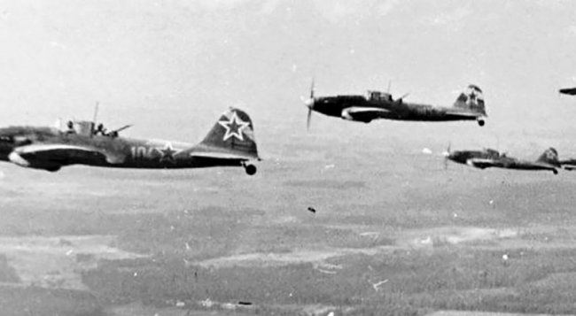 Увы, найти их фотографии не удалось - только снимок самолётов полка, сделанный над Крымом в 1944-м. Может быть, ведущий самолёт как раз тот, на котором вылетели на задание наши герои… Два лётчика, одному навеки 25, другому - 32. Два героя, отдавших жизни за Крым. Будем помнить, земляки.