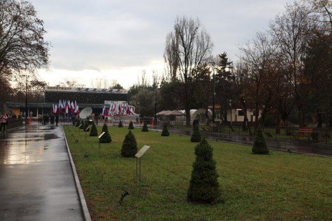 На сегодняшний день, в рамках благоустройства сквера, на Аллее завершены все работы. В зоне отдыха прошла высадка канадских елей, возле них установлены информационные таблички, к каждому дереву проведена подсветка и полив. Кроме того, зона сквера благоустроена малыми архитектурными формами - установлены лавочки и урны, а также проложены пешеходные дорожки.