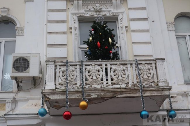Дом культуры отличился креативом. Сразу видно – люди творческие. Наряженную елочку поставили на балкон. Вполне изобретательно, ничего не возразишь.