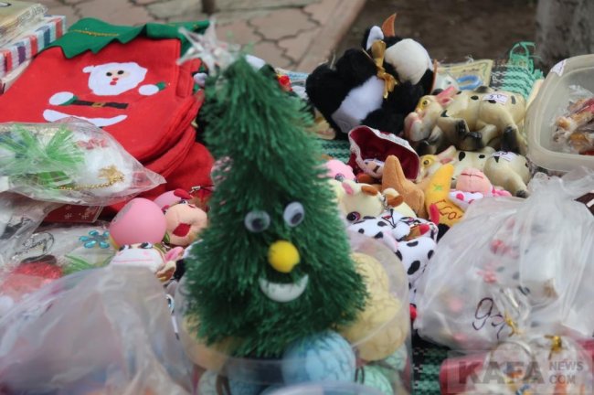 Еда, сувениры, шапочки с поднимающимися вверх ушами…. Настоящие елки, а не сосны и рядом мандарины на прилавке – это на центральной автостанции напротив храма.