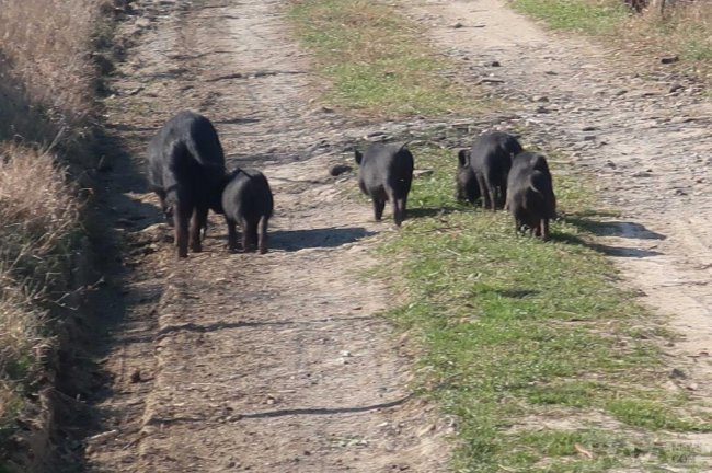 По улицам дачного места свиньи с поросятами ходят совершенно безбоязненно. Собаки на них никак не реагируют.