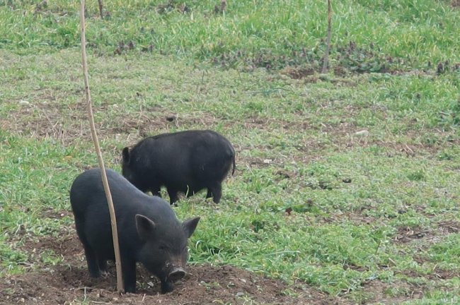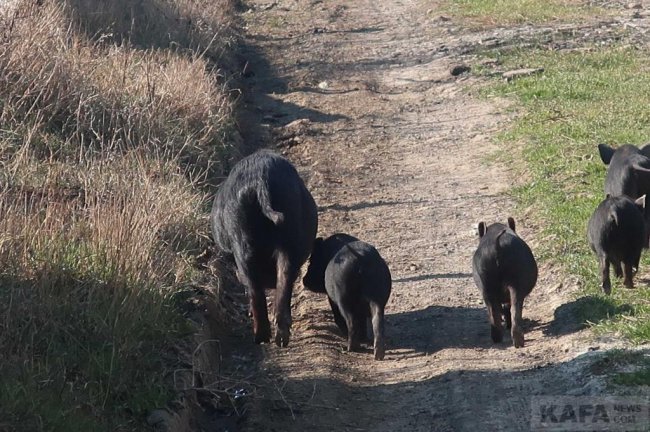 Стадо черных мини-пигов радует своим видом народ в жилмассиве «Степной», который феодосийцы по-простому называют Очистными. У мини-пигов все, как у обычных свиней: и хвостики крючком, и рыльца пятачком, и подхрюкивают они вполне себе, как обычные свиньи.