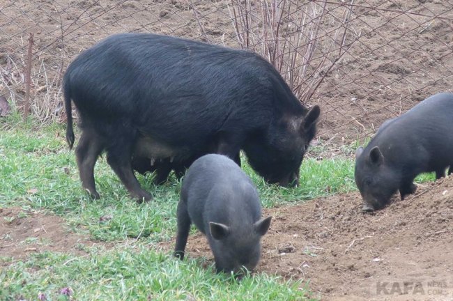 Теперь у Оксаны и кабан, и две свиноматки, и их многочисленное потомство. Потомством, кстати, народ живо интересуется, и вьетнамские вислобрюхие свинки расходятся по рукам.