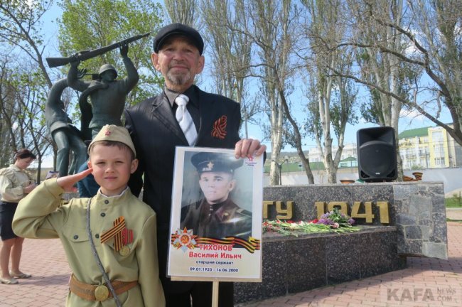 С утра прошло официальное возложение цветов к мемориалу «Вечный огонь», другим городским памятникам воинам-победителям и братским могилам. Хотя обычные горожане цветы несли сюда и в течение всего дня. Одно из утренних возложений нынче было особенным. Перед ним у памятника «Феодосийскому десанту» сначала прогремел «Выстрел памяти» - настоящий артиллерийский залп. «Кафа» рассказывала своим читалелям об этой военно-патриотической акции отдельно.