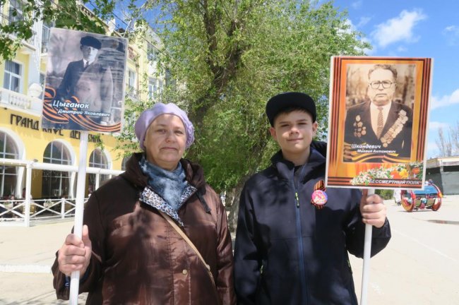 Традиционное шествие «Бессмертного полка» нынче проводилось «заочно», в онлайн-режиме. Но никто не мог помешать благодарным потомкам выйти в город с портретами своих героических предков, остановивших распространение «фашистской чумы». Люди с большими фотопортретами участников Великой Отечественной войны в руках попадались буквально на каждом шагу. От маленьких детей до ветеранов преклонных лет. А еще несли красные знамена и флаги, победные транспаранты и воздушные шарики. У большинства на груди символ победы - Георгиевская ленточка.