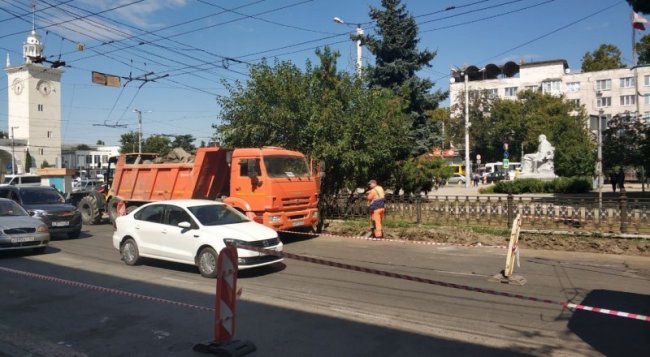 Сейчас на участке дороги от железнодорожного вокзала Симферополя в сторону центра города движение для автомобилей частично ограничено.