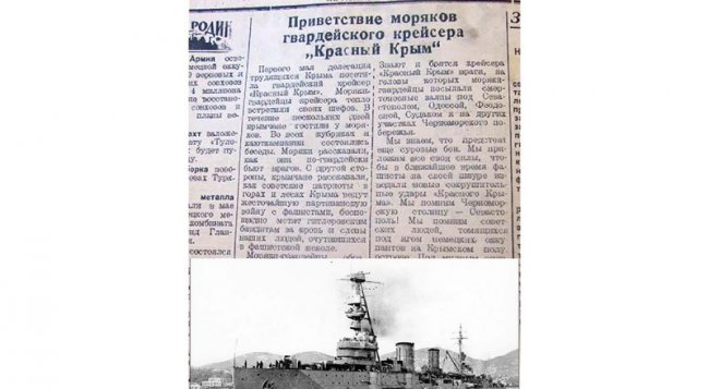 Вновь оборона Севастополя, доставка грузов и пополнения - почти 100 рейсов, последний 4 июня 1942-го. А 18 июня, приказом наркома ВМФ Николая Кузнецова (ранее служил на Черноморском флоте, крейсерах «Червона Украина» и «Красный Кавказ»), за «стойкость, мужество, дисциплину, организованность и героизм» экипаж крейсера стал «гвардейским». После падения Севастополя - битва за Кавказ эвакуация людей из Новороссийска в Поти и Батуми, переброска подкрепления в Туапсе, десанта в оперативный район Станичка-Южная Озерейка под Новороссийском. После крейсер, существенно пострадавший в войну, стал почти на год на ремонт. Сохранился номер «Красного Крыма» за 31 мая 1943-го - приветствие моряков гвардейского крейсера: «Мы приложим все свои силы, чтобы в ближайшее время фашисты на своей шкуре изведали новые сокрушительные удары «Красного Крыма»…