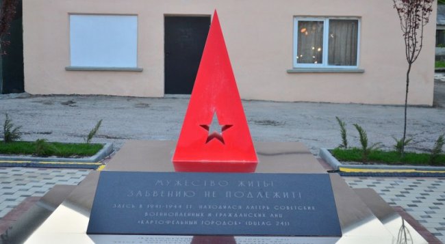 В городе, на территории базы Горплодовощекомбината (на улице имени погибшей в Гражданскую войну подпольщицы Евгении Жигалиной), гитлеровцы устроили пересыльный концлагерь. Вначале только для военнопленных, потом сгоняли и гражданских, перед отправкой на работы в Германию. Узники, их за всё время около 145 тысяч, находились либо в холодных подвалах, либо просто под открытым небом, из еды - раз в сутки баланда, воды - глоток… Более полусотни ежедневно уходили в вечность, всего - более 6 тысяч погибших: кого-то сжигали неподалёку, кого-то вывозили в балки, несколько тысяч захоронены у стены на Староармянском кладбище, на улице Старозенитной…