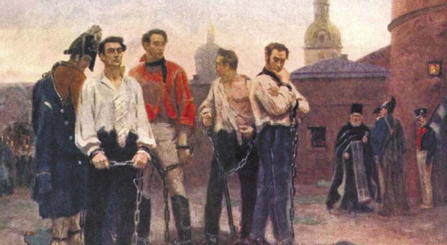 В царской России казнили часто и по-разному. Здесь и четвертовали, и сажали на кол, рубили головы, заливали горло свинцом, душили удавкой. Цивилизация, прогресс принесли и в палаческое дело свежую струю. Глядя на Европу, стали чаще вешать и расстреливать. Публичные казни разбойника с большой дороги, татя или титулованного казнокрада вызывали у населения только чувства одобрения и любопытства. Другое дело - политические акты возмездия. В этом случае в законности и справедливости приговора просвещённые люди нередко сомневались. Так, по делу о неудавшемся восстании декабристов всего в России было привлечено к ответственности 600 дворян. Верховный уголовный суд, решения которого направлял сам самодержец, вынес 36 смертных приговоров. Пятерых предполагали четвертовать, а 31 декабристу отсечь голову. Осуждённые просили императора, чтобы во время казни «не была задета их честь». Николай I смягчил наказание: всем, кому грозило отсечение головы, сохранили жизнь. Главной пятёрке заговорщиков (Кондратию Рылееву, Павлу Пестелю, Сергею Муравьёву-Апостолу, Михаилу Бестужеву-Рюмину и Петру Каховскому) четвертование заменили на повешение. Милостью это не назовёшь. Во все времена повешение считалось позорным.