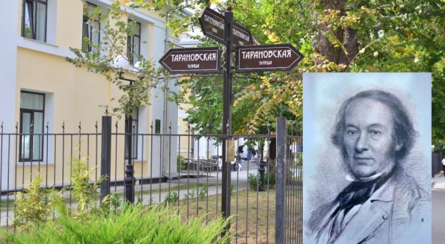 По словам читательницы Валентины Николаевны новое название она прочла на указателе в центре. Вначале мы его не нашли вдоль улицы Жуковского, но, пройдя чуть дальше от рядом расположенного сквера имени Сергия Радонежского к ограде Крымского медицинского колледжа, обнаружили две стрелочки-указатели - «Улица Тарановская» (не Тарновского!). Они появились в январе минувшего года к 300-летию прокуратуры России - вместе с памятной доской, подготовленной Крымским юридическим институтом (филиалом) Университета прокуратуры Российской Федерации и домом-книги «Родное слово» и посвящённой прокурору Таврической области в 1788-1791 годах Александру Степановичу Таранову-Белозёрову. Именно в память о нём благодарные симферопольцы назвали тогда улицу - одну из первых городских, по росписи, составленной архитектором П. (увы, имя забыто) Григорьевым, - Тарановская, в 1839-м. В 1891-м почему-то переименовали в Садовую, а уж в 1904-м - в Жуковского.