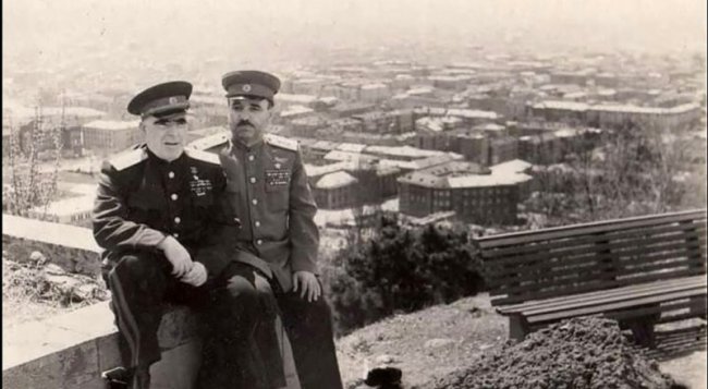 Герои Советского Союза Андраник Казарян (слева) и первый комендант освобождённого Киева Саркис Мартиросян. Фото предоставлено Вартаном ГРИГОРЯНОМ. Когда-то его имя было известно многим, к нему обращались за помощью и всегда находили её, совет, поддержку… Теперь об этом человеке, патриоте, почему-то не принято вспоминать, лишь единоверцы не забывают Героя Советского Союза армянина Андраника Казаряна. И «Крымская правда» старается помнить друга газеты, внештатного автора Андраника Абрамовича, стараниями которого зародилась на полуострове поисковая работа, выяснение судеб павших в Великую Отечественную, окрепло патриотическое воспитание. 14 мая исполнилось 120 лет со дня рождения нашего земляка. Вспомним легендарного комдива 74-й Киевско-Дунайской и 215-й Смоленской стрелковых, связавшего жизнь со службой Родине в 16 лет; фронтовика, выстоявшего и победившего в сражении за Малоархангельск, Курской битве, дважды - на Днепре, в Белоруссии, Восточной Пруссии, на Дальнем Востоке. Считавшего на фронте, как сохранил его слова в воспоминаниях командир корпуса Герой Советского Союза Иван Людников: «Главное - положить врага, а уж подняться мы ему не дадим». А в жизни, как вспоминали старшие коллеги Владимир Бобашинский и Александр Назарьев, верил друг газеты: «Надо быть честным перед собой, перед другими, перед Родиной, перед совестью - тогда легче, тогда всё получится». «Весело воюет» К счастью, как рассказывает член Крымского армянского общества Вартан Григорян, имя Андраника Абрамовича сохранено в памяти улиц его Симферополя - в национальном посёлке Айкаван, в самом городе; смогли земляки мемориальную доску на доме, где жил, установить - угол улиц Павленко и Гоголя. А вот обещанная школа имени героя, где могли бы дети равняться на патриота, не появилась, увы; как и сквер, много лет обещанный властями, в котором мечтали единоверцы, друзья, армяне-ветераны установить памятник, высадить его любимые цветы и деревья, чтобы появилось у горожан новое место отдыха, чтобы добрым словом фронтовика поминали. И звание почётного гражданина Андраник Казарян, видимо, не заслужил своей жизнью - при ней сам противился, а после, оказывается, не присваивают. Андраник родился 1 (14-го по новому стилю) мая 1904 года в семье ремесленника из старинного армянского города-крепости Шуша Елисаветпольской губернии (Нагорный Карабах) Российской империи. Очень рано остался без родителей, но дедушка, взявший внука на воспитание, настоял, чтобы начальную школу паренёк окончил. С десяти лет работал подмастерьем, а в 16 стал воспитанником-сигналистом в отдельном радиобатальоне Красной Армии в Армении, и в Гражданской войне довелось участвовать, сражаясь в Закавказье. Школу командного состава окончил, пехотную, был комвзвода, комроты, начштаба, комполка, тактику преподавал на курсах комсостава, а сам заочно учился в Военной академии имени Михаила Фрунзе, два курса, а в войну, в 1944-м, был и ускоренный - в Высшей военной академии имени Климентия Ворошилова. В начале Великой Отечественной стал подполковником, командовал 988-м стрелковым полком на Южном фронте, что держал оборону на левобережье Днепра, был тяжело ранен. После госпиталя служил в 134-й отдельной курсантской стрелковой бригаде, начштаба, комбриг, оборона Курской области. Осенью 1942-го бригада стала 74-й стрелковой дивизией, 