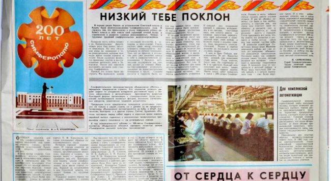 Спецномер нашей газеты за 28 сентября 1984-го, посвящённый награждению Симферополя орденом Трудового Красного Знамени. Фото автора. Ты одеваешься в зелень и разноцветье по весне и слегка (а иногда, если повезёт, то и сильно) укрываешься снегом зимой. Ты, мечтая, растёшь ввысь и вширь кварталами современных многоэтажек и офис-центров и, вспоминая, прячешься в уютных лабиринтах старых двориков. Твои дети, жители, созидают и разрушают, смеются и плачут, встречаются и расходятся, появляются в твоих роддомах и навечно сливаются с твоей землёй… Ты героический и стойкий, своими борцами-защитниками, ты орденоносный трудом своих созидателей… Ты фотогеничен и не раз снимался в кино, правда, себя редко играя, зато вот Тося из фильма «Девчата» твоё кулинарное училище окончила, а Антон Павлович (в честь, которого 80 лет назад ты переименовал улицу Кантарную - Чехова) уверял, что в тебе, городе С. «очень хорошо, есть библиотека, театр…». Ты разный, Симферополь, величественный и приземлённый, яркий и однотонный, шумный и степенный - у каждого ты свой, город, свои чувства, воспоминания, надежды, с тобой связанные. Ты наш Симферополь, у кого-то с поколениями впитанный, кому-то лишь недавно приглянувшийся, но всё равно уже свой, неповторимый и родной. В эти дни аж 240 лет отмечаешь, взрослый и молодой город, столица Республики Крым. Центр округи Статус столицы к имени, «Симферополь, град пользы», как предложил назвать твой «крёстный» архиепископ и учёный Евгений Булгарис, предполагался сразу. Так задумали «родители» императрица Екатерина Великая и будущий Екатеринославский и Таврический генерал-губернатор Григорий Потёмкин, 241 год назад принявшие полуостров под Державу Российскую и создавшие Таврическую область. А вот место для тебя иное вначале рассматривали: в феврале 1784-го в правительственный Сенат Российской империи Григорий Потёмкин внёс проект о том, что всю Таврическую область хорошо бы разделить на 7 округ. Пять из них уже, по сути, были, Евпаторийская, Перекопская (обе в Крыму), Днепровская, Мелитопольская (обе - Северная Таврия), Фанагорийская (Таманский полуостров). И ещё две на полуострове планировались: Симферопольская. «В оной имеет быть построен областной город Симферополь, на месте бывшего Старого Крыма. Сие наименование значит Град пользы, и герб его - улей с пчёлами, имеющий вверху надпись Полезное». Левкопольская. «В оной город Левкополь, где ныне Ак-Мечеть…». Так что быть бы нам с вами, земляки, левкопольцами (жителями «светлого» или «тихого», в переводе с греческого, города) и не иметь бы Крыму его тёзки - Старого Крыма, не передумай тогда светлейший князь. Быть может, и с подачи императрицы, помнящей историю, как первый русский лагерь полководец Василий Долгоруков-Крымский и его солдаты именно у Ак-Мечети устроили; знавшей, что там же, у старинного татарского города на берегу Салгира, иной полководец Александр Суворов с солдатами первое русское воинское укрепление возвели - Александровский редут… И в начале июня (по новому стилю, потому и празднуется день рождения города в первые мгновения лета) появился ордер (предписание) генерал-губернатора правителю Таврической области Василию Коховскому (Каховскому) о подвозке строительных материалов для создания главного города региона именно на месте первых русских лагеря и редута. «Перепоручаю