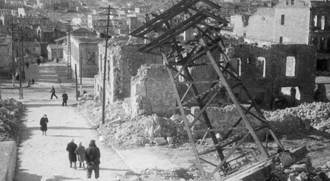 Центр Севастополя после освобождения от немецко-фашистских захватчиков. Май 1944 года. Фото Ю. СОКОЛОВА/ТАСС. Президентская библиотека опубликовала справку наркома госбезопасности Крымской АССР Петра Фокина наркому госбезопасности СССР Всеволоду Меркулову о разрушении городов Крыма. С её содержанием ознакомился корреспондент «Российской газеты». Оригинал ранее совершенно секретного документа хранится в фондах Центрального архива Федеральной службы безопасности России. Справка была составлена 2 ноября 1944 года. Фокин докладывает в ней, что по берегу Севастополь разрушен на 96-97%. Так, разрушенными, в том числе, оказались 7800 жилых домов объёмом 5,325 миллиона кубометров, три электростанции с высоковольтной передачей, морской завод имени Орджоникидзе. Также были разрушены мастерские военпорта, авторемонтный завод, холодильник, хлебозавод, все культурные учреждения, в том числе 22 школы, 20 клубов, четыре музея, 432 исторических памятника, здание Панорамы обороны Севастополя 1854-1856 годов. Ущерб, нанесённый этому городу, в справке оценивается более чем в 2,1 миллиарда рублей. К моменту её написания город только начинал восстанавливаться. Удалось открыть четыре школы и две бани, частично - хлебозавод. Было начато строительство четырёх жилых корпусов на 1800 человек. В Керчи был разрушен почти весь жилищный фонд, в том числе 1334 здания только коммунального хозяйства объёмом 1,6 миллиона кубометров. Также были разрушены завод имени Горького, коксохимический завод, Камыш-Бурунский железорудный комбинат, табачная фабрика, консервный и бочарный заводы, рыбные промыслы, порт, все коммунальные и культурно-бытовые здания. А вот жилой фонд Ялты был повреждён незначительно, по сравнению с Севастополем и Керчью, поскольку там разрушено было «всего» 94 здания. Вместе с тем с карты города исчезли 17 промышленных объектов, в том числе ферментационный завод, а также порт, морской вокзал, электростанция и театр. Отмечено в справке и то, что оборудование ялтинской кинофабрики стоимостью 2,2 миллиона рублей было вывезено немцами, как и дорожные машины на 9 миллионов рублей. Советские бойцы во время высадки на Крымский берег. Апрель 1944 года. Фото Макса АЛЬПЕРТА, Евгения ХАЛДЕЯ/ТАСС. До войны в Ялте работал 131 санаторий. К 1944 году 24 из них были разрушены полностью, в том числе пять санаториев, находившихся в самой Ялте, а не в пригородах. Среди разрушенных оказался и санаторий имени Сталина. Воронцовский дворец в Ялте уцелел, но из него немцы вывезли 70 картин и всю мебель. В Ливадийском дворце сожгли один из корпусов. Все экспонаты были вывезены и из Ялтинского музея. «Симеизская обсерватория разрушена полностью и оборудование вывезено, - говорилось в архивной справке. - Вывезено также немцами всё медицинское оборудование и мебель из сохранившихся санаториев». В Феодосии было уничтожено 447 домов, а 125 зданий - частично разрушены. Полностью разрушенными оказались электростанция, хлебозавод, мельницы, 58 культурно-общественных зданий, 12 школ, восемь клубов, театр, все санатории феодосийского курорта. Только по санаториям ВЦСПС было разрушено 32 здания стоимостью 17,3 миллиона рублей. В Симферополе наиболее ощутимо пострадали 249 самых крупных жилых домов, построенных преимущественно в годы советской власти. Материальный урон только по этим зданиям оценивался в 21,8 милли