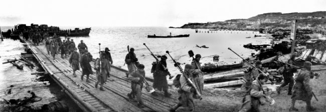 Советские бойцы во время высадки на Крымский берег. Апрель 1944 года. Фото Макса АЛЬПЕРТА, Евгения ХАЛДЕЯ/ТАСС.