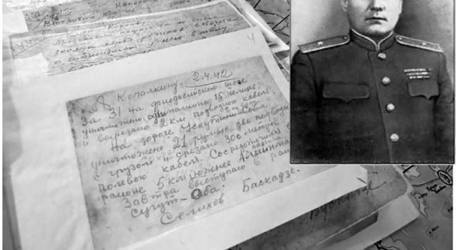 Василий Капалкин и радиограммы из Крыма. Фото автора. В кино и литературе их называют «бойцы невидимого фронта», а почти 106 лет назад они считались «регистраторами», сотрудниками созданного 5 ноября 1918-го Регистрационного управления в Полевом (в наши дни - Генеральном) штабе армии. Задачи у управления простые и в то же время неимоверно сложные - координировать действия «всегда первых» разведчиков во всех родах войск, узнавать, анализировать, предугадывать, предотвращать, успевать… служить Родине. В 1921-м управление получило «честное» имя - Разведывательное. И, как в песне, «Военный разведчик - особое званье,/ В котором расчёт, и отвага, и риск,/ Где верность присяге, талант и призванье/ С любовью к отечеству переплелись…». Так служил и человек, что в период фашистской оккупации полуострова сумел наладить связь с Большой землёй для оставшихся в Крыму ополченцев партизан, а уж потом они смогли наладить стойкую связь с подпольщиками, помогали друг другу в общем деле борьбы с врагом, данными, оружием, заботой… Василий Капалкин, генерал-майор, 105 лет назад добровольно вступивший в Красную Армию едва 18 исполнилось. Начотдела фронта Впервые эту фамилию, правда, Копалкин, прочла на записях радиограмм: несколько штук, чудом сохранившихся и оказавшихся в Госархиве республики. Почти тридцать лет назад их, спрятанные в небольшую металлическую коробочку, откопали школьники; реставраторы архива сумели сохранить рассыпавшиеся от времени тонкие листки, датированные 1942 годом, 29 марта - 2 мая. «2 апреля 1942-го. Копалкину. За 31-е на Феодосийском шоссе уничтожены: автомашина, 15 немцев и вырезано 2 километра полевого кабеля. На дороге Ускут-Еникале уничтожены 21 румын, 2 подводы с грузом и срезано 300 метров полевого кабеля. Сосредоточился в районе 5 километров южнее Айянма, завтра выступаю в район Сугут-Оба. Селихов. Баскадзе». Николай Селихов - командир Судакского десанта, после - командир Второго партизанского района (сменил Ивана Генова), Михаил Бускадзе - комиссар района, а на вершине Сугут-Оба, что неподалёку от Белогорска, теперь памятник сражавшимся в этих местах народным мстителям. Белогорск - ранее Карасубазар, в окружавших его лесах и в соседних Зуйских, базировались Джанкойский, Биюк-Онларский (Октябрьское), Зуйский, Ичкинский (Советское), Сейтлерский (Нижнегорское), Колайский (Азовское), Карасубазарский партизанские отряды (созданные с октября 1941-го) и пять Красноармейских (их создали бойцы, отступавшие под вражеским натиском с севера полуострова). Второй партизанский район. Мария Харченко, боец его разведгруппы, тогда 18-летняя Мария Порчинская (дочь погибшего руководителя подпольной группы Карасубазарского района Леонида Людвиговича, сестра погибших Семёна и Галины) вспоминала, что в их район были заброшены с Большой земли радисты «Толя, Ася, Надя, Иванов. Все погибли в боях…». Заброшены в леса радисты с радиостанциями, чтобы партизаны, крымчане, не чувствовали себя забытыми страной; продукты, патриотическая литература, в том числе и наш «Красный Крым» Евгения Степанова и Абрама Райчука; помощь с боеприпасами и людьми, эвакуация раненых - это всё заслуга того самого «Копалкина». Василия Михайловича Капалкина, начальника разведотдела Закавказского (Кавказского, Крымского, Северо-Кавказского) фронта. В архиве Министерства обороны сохранился наг