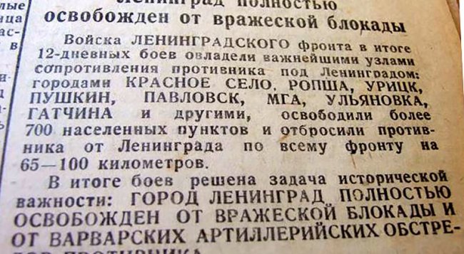 Вот в конце января 1943-го в «Красном Крыму», как называлась в войну наша газета, опубликована сводка Совинформбюро, переданная по радио Юрием Левитаном. «Недавно части Красной Армии перешли в наступление против немецко-фашистских войск в районе южнее Ладожского озера. Прорвав долговременную укреплённую полосу противника глубиной до 14 километров и форсировав реку Нева, наши войска после семидневных боёв заняли Шлиссельбург, железнодорожные станции Синявино, Подгорная и другие населённые пункты. С 18 января части Красной Армии Волховского и Ленинградского фронтов соединились и тем самым прорвали блокаду Ленинграда». Это была операция «Искра», что проводили бойцы Волховского (командующий Кирилл Мерецков, за успех операции отвечал его заместитель Иван Федюнинский) и Ленинградского (Леонид Говоров) фронтов, их поддерживали Краснознамённый Балтийский флот (Владимир Трибуц), Ладожская военная флотилия (Виктор Чероков) и авиация дальнего действия (Александр Голованов). Теперь там, у кромки Старо-Ладожского канала, памятник «Разорванное кольцо». И память о снежной встрече самых первых из фронтов, разведчиков. Её описывает Ирина Богданова в книге «Мера бытия». «Когда на бровке канала мелькнули фигуры, взвод старшего сержанта Кириченко (как мы узнали по документам Центрального военного архива, - 27-летнего Георгия. - Ред.) 284-го полка Ленинградского фронта рухнул в снег, готовый умереть, но не пропустить фашистов. <> Выстрелов не последовало. «Наши? Волховский фронт?» - неуверенным голосом произнёс кто-то из разведки. «Наши? Ленинградский фронт?» - спросили с другой стороны. И взвод начал вставать, двумя руками вздымая над головой автоматы. Шедшие навстречу повторили жест, первую часть пароля. Два фронта встретились. Ошалев от восторга, охрипший хор мужских голосов одним дыханием проорал окончание пароля - «Победа!». Ленинградская Победа! И заметка уже конца января 1944-го: «Войска Ленинградского фронта в итоге 12-дневных боёв овладели важнейшими узлами сопротивления противника под Ленинградом: городами Красное Село, Ропша, Урицк, Пушкин, Павловск, Мга, Ульяновка, Гатчина и другими, освободили более 700 населённых пунктов и отбросили противника от Ленинграда по всему фронту на 65-100 километров. В итоге боёв решена задача исторической важности: Ленинград полностью освобождён от вражеской блокады и от варварских артиллерийских обстрелов противника». Ленинградская Победа!