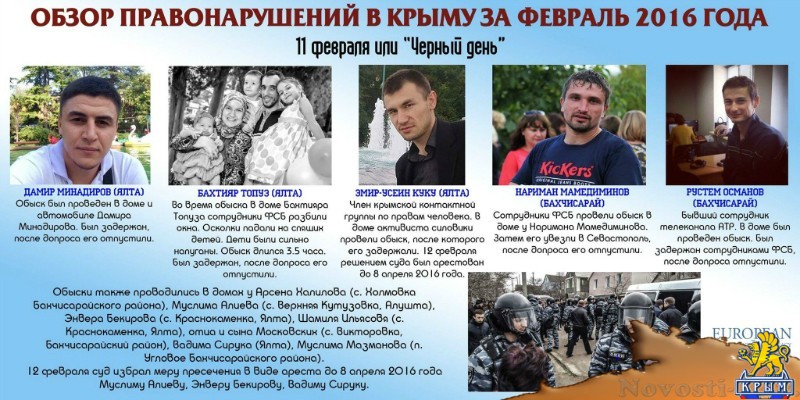 Отметим, ранее сайт «Новости Крыма» публиковал обзор нарушений прав человека на территории аннексированного полуострова за январь 2016 года.