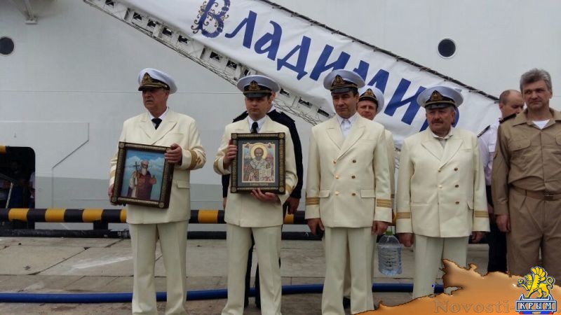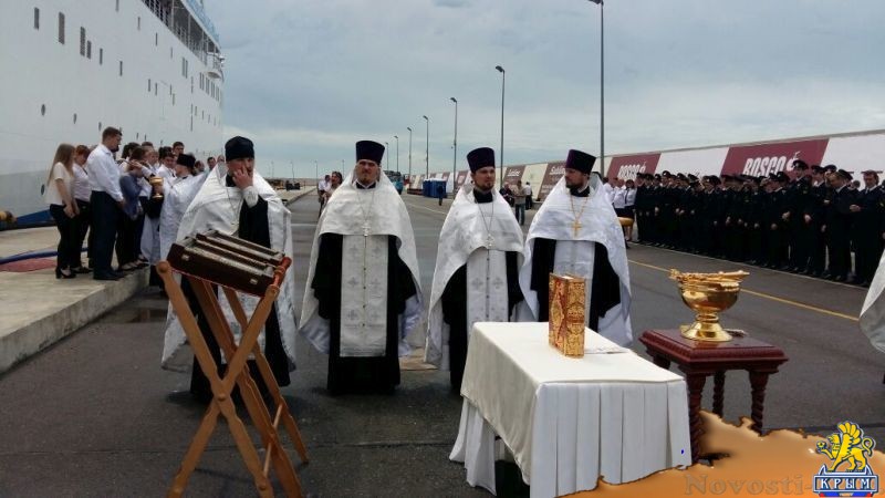 Протоиерей Екатеринодарской и Кубанской епархии Илия Быстров со священнослужителями Сочинского, Адлерского и Лазаревского церковных округов Сочи освятили лайнер «Князь Владимир», предназначенный для круизов между Крымом и Кавказом.