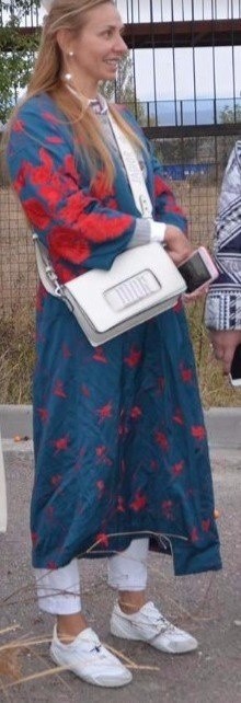 В таком образе ее заметили во время посещения сафари парка «Тайган». Очевидцы отмечали некоторую безвкусицу и простоту в образе жены пресс-секретаря главы государства.