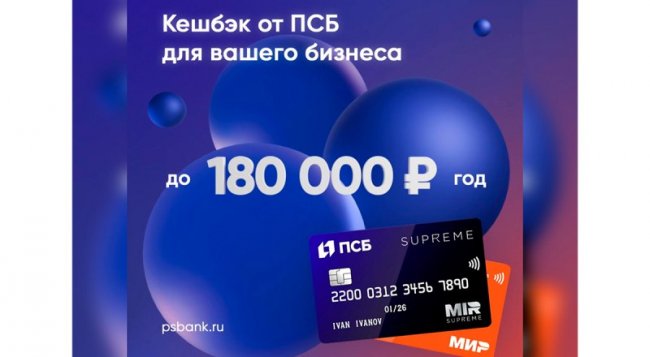*Для начисления кешбэка клиент должен самостоятельно подключиться к акции «Кешбэк для бизнеса» и выбрать категории начисления в интернет-банке или мобильном приложении «ПСБ Бизнес», а также совершить общий объем покупок на сумму не менее 20 000 руб. за 1 месяц.
