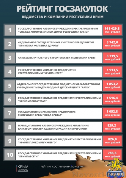 ✔ Служба автодорог Крыма обогнала минздрав и минобороны России по сумме контрактов госзакупок - «Экономика Крыма»