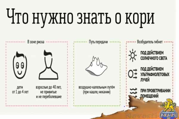 «Корь отчасти похожа на грипп и имеет те же осложнения, — объясняет заведующий кафедрой инфекционных болезней Медицинской академии Крымского федерального университета Искандер Каримов. — Бывает так, что болеют люди из числа привитых. Корь может быть безлихорадочной, у привитого может не быть сыпи. У нас были среди студентов и преподавателей подобные случаи. В России общая заболеваемость выросла в 4 раза, а на Украине — в 70 раз. Угроза есть. Теоретически корь может распространится». Радоваться остаётся тому, что сейчас «притихли» сезонные вирусы. Это значит, что меньше чихающих и кашляющих, и у кори меньше шансов заражать таким способом переноса. Впрочем, впереди весна — время, когда вирус кори особенно активен.