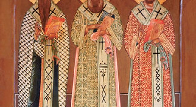 Ныне наши духовные взоры обращены к немеркнущему наследию дивных Вселенских учителей и Святителей Василия Великого, Григория Богослова и Иоанна Златоустого, которые, подобно трём неугасимым светильникам, озаряют мир Боговдохновенным глаголом, освещают путь всякому алчущему и жаждущему святой Божественной правды.