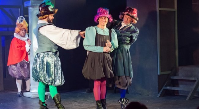 Сцена из спектакля. Фото Надежды Бондарчук. Как это сделали режиссёр Нина Пермякова, художник-постановщик Сергей Пермяков и артисты Крымского театра юного зрителя, оценили первые обладатели счастливых билетов. Желающих попасть на гротескную комедию было намного больше, чем мест в зале. Каких только шекспировских строптивых и их укротителей ни изображали на театральных сценах и на киноэкране! Одни постановщики делают из гротескной комедии балаган, другие безудержно фантазируют, вкладывая свои подтексты, третьи так «актуализируют» написанное пять веков назад, что только диву даёшься. И критики начинают тоже «изгаляться», доходя до того, что называют классика мастером газлайтинга - формы психологического насилия, при которой собеседник начинает сомневаться в правильном восприятии происходившего и происходящего. Ничего этого нет и в помине в пополнившей репертуар постановке ТЮЗа. Есть увлекательный рассказ о любви, женской мудрости, мужской силе и благородстве. Кто скажет, что это нынче не актуально? Когда со сцен и экранов льётся поток, сметающий общечеловеческие ценности, разрушающий устои семьи - целомудренную любовь, взаимопонимание и уважение, обращение к авторам подобным Шекспиру должно быть бережным, возвращающим на сцену высокие смыслы бытия. А улыбки и смех в этом не помеха. Совсем наоборот - они уводят от назидательности и скуки, дарят хорошее настроение и напоминают, что есть смысл жизни. А некоторым молодым просто-напросто открывают глаза. Всё это есть в наполненном остроумием спектакле тюзовцев. И актёры, и зрители легко существуют в атмосфере, создать которую помогли поистине художественные декорации и костюмы, с которыми гармонирует поддерживающее режиссёрский замысел музыкальное оформление, сделанное Павлом Даброновым, - народные и средневековые мелодии. В слаженном актёрском ансамбле дуэт исполнителей главных ролей - Олега Погорельца и Алёны Давыдовой, под стать которым Максим Заичкин - Грумио, Петруччо - Владимир Миллер и Сергей Новиков - Транио. Каждая премьера в этом театре - праздник и труппы, и зрителей, которых непременно ждёт сюрприз. На этот раз в одном из свитков с сонетом Уильяма Шекспира, которые получили все пришедшие на спектакль, был красивый автограф режиссёра-постановщика, и это было приглашение приятно провести время в одном из городских ресторанов за счёт заведения, отметив достойное пополнение репертуара любимого театра.