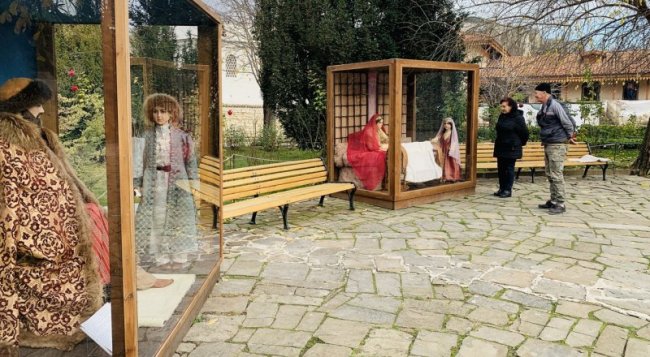 Витрины с экспонатами. Фото Георгия Мушкетика. Так называется временная выставка во дворике бахчисарайского Музея истории и культуры крымских татар. Выставленные в витринах интерьеры ремесленных мастерских, ученического класса, жилых покоев дворца воссоздают атмосферу древнего города и его жителей, дворца и его обитателей. Демонстрируются также уникальные находки археологов во время исследований и реставрационных работ на территории Ханского дворца. Среди них - декоративные элементы кровли, черепица, фрагменты гончарных труб и керамических плиток для пола, фрагменты мраморной плиты и штукатурки с росписями, кованые гвозди и копия витражного окна. Посетителей знакомят не только с этими предметами, но и с историей дворцовых построек, большой ханской мечети, родового кладбища правителей крымского ханства. Можно совершить обзорный осмотр объектов археологии, многочисленных фонтанов, парка, и погрузиться в атмосферу давних лет. Выставка под открытым небом доступна для посещения до 20 декабря.