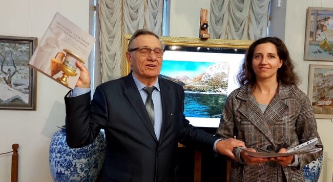 Вячеслав Пересунько вручает приз Ассоциации музеев и заповедников Татьяне Фастенко. Фото автора. Раз в два года Симферопольский художественный музей приглашает художников и зрителей насладиться тонким искусством чистой акварели. Инициатива создания этого культурного проекта принадлежит выдающемуся крымскому искусствоведу Рудольфу Подуфалому, и теперь выставка названа его именем. Проект сразу же стал популярным и у художников, и у любителей изобразительного искусства. Причем не только крымских. Многие имена участников нынешней, четырнадцатой по счёту, хорошо известны ценителям акварельной живописи. Среди них - постоянные участники биеннале, неоднократные её призёры Николай Дудченко, Александр Кропко, Игорь Шипилин, Владимир Даниленко, Александр Марьяхин. Рядом с их картинами - работы молодых коллег. - В этом году свои работы представили 138 художников не только крымских, но и из других российских регионов, - отметила на закрытии заместитель директора СХМ, искусствовед Светлана Глазунова. - Экспозиция отличается разнообразием жанров, технических решений. Мы видим пейзажи, натюрморты, портреты, символические и жанровые композиции. Пейзажные миниатюры разнообразны по подходу и трактовке образов природы. Изящный пуантилизм одного из постоянных участников нашего проекта Владимира Даниленко соседствует с энергичной, раскованной живописью художницы молодого поколения Олеси Лишаевой. Лёгкие прозрачные мазки натурных работ Ирины Алексашиной передают атмосферу евпаторийских пляжей. Александр Прусаков утончённо решает тему южнобережного пейзажа тонкими цветовыми переходами и чёткой графичностью пространства. От картины Оксаны Москвич из Иркутска дохнуло студёным воздухом северного края. Наталия Тарасова из Санкт-Петербурга динамичными мазками «по-коровински» передаёт черты города. Симферополец Александр Кропко акварелью «Город у моря» рассказывает о рождении, жизни и увядании обычного крымского дома на побережье. О каждой картине есть что сказать, о чём перед ней подумать. Кульминационный и очень волнительный момент биеннале - вручение призов и итоги розыгрыша картин участников. Главным призом жюри наградило автора серии работ «Пантикапейские артефакты из коллекции Керченского музея древностей» Александра Андрющенко. Отметив, что картины «Камень», «Терракота», «Металл» выражают дух древней крымской земли. Дипломы первой степени получили три художника: симферополец Айдер Алиев, бахчисараец Владимир Хоришко и севастополец Игорь Шипилин. На второй дипломной ступени симферопольцы Татьяна Дыманова-Голынская, Александр Михальянц и Диана Шостаковская. Третье место на пьедестале почёта заняли Анна Королькова из Севастополя, Олеся Лишаева и Анна Павленко из Симферополя. Симферопольский художественный музей наградил своим призом Александра Михальянца. А Ассоциация музеев и заповедников Крыма отдала предпочтение работам молодых симферопольских художниц Татьяны Фастенко и Виктории Козловой. Приз зрительских симпатий достался Наталье Нестеровой из Севастополя. Большая группа участников награждена Почётными дипломами. По традиции, приходившие на выставку в течение полутора месяцев зрители, входными билетами участвовали в лотерее. Счастливчики унесли с собой акварели Виктора Даниленко, Валерии Козловой,