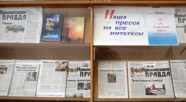 - Старейшая газета нашего полуострова на протяжении всех лет своего существования пользуется популярностью и авторитетом у читателей, является значимым изданием в общественной жизни республики, - отмечает заведующая читальным залом Елена Плахоцкая. - У газеты всегда был и есть собственный взгляд на происходящие в разных сферах процессы, она открыта для дискуссий. О её заслугах говорят Орден Трудового Красного Знамени, медали «За оборону Севастополя» и «За возвращение Крыма», Почётная грамота Правительства РФ «За большой вклад в сохранение русского языка и культуры, развитие единого мирового русскоязычного информационного пространства, поддержание и укрепление гуманитарных связей с соотечественниками за рубежом». «Крымская правда» стала первым печатным изданием на полуострове, получившим Благодарность президента РФ Владимира Путина «За заслуги в развитии средств массовой информации и плодотворную деятельность». Нашу библиотеку с газетой связывает многолетнее сотрудничество. На её страницах освещаются все значимые мероприятия, выставки, встречи с творческими людьми, презентации новых книг крымских писателей.