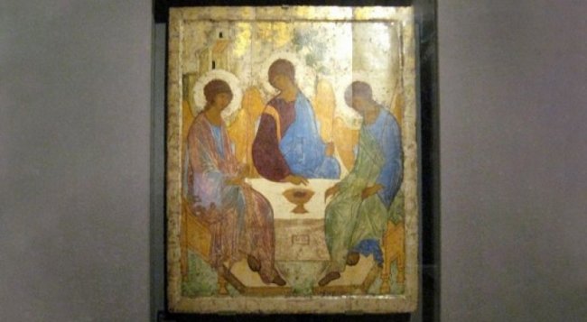 Напомним: «Святая Троица» - выдающееся произведение древнерусской живописи первой половины XV века, находится в коллекции Государственной Третьяковской галереи.