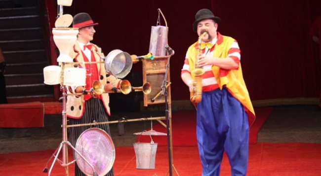 Сергей Просвирнин в дружбе и со скрипкой, и с ударными, и с саксофоном. Фото из открытого источника. В этом убедятся читатели и гости Республиканской библиотеки для молодёжи, посетив цикл праздничных мероприятий «Новогодней недели в молодёжке», которая стартует 21 декабря. Фотозона «В ожидании праздника» оставит на память красочные снимки, экспозиция «Новогодние приключения на книжных страницах» познакомит с героями прозаических и поэтических произведений. Посетители услышат рассказы об истории создания в разные времена новогодних украшений, о национальных традициях, связанных с подготовкой к празднику. Желающие пройдут обучение на мастер-классе и смогут своими руками сделать ёлочные украшения. Тема волшебства пронизывает культурно-просветительную программу для детей «В гостях у новогодней сказки» в Доме-музее Ильи Сельвинского. 22 декабря юных посетителей здесь встретят студенты Симферопольского музыкального училища им. П. И. Чайковского. Они исполнят популярные классические и современные произведения и проведут мастер-класс. А сотрудники музея покажут обновлённую экспозицию. Цирк - это всегда чудо и волшебство, но в Новогодние праздники - они особенные. В этом легко убедиться, посетив Симферопольский государственный цирк имени Бориса Тезикова с 23 декабря по 8 января. Захватывающая программа «Ёлка в цирке» подготовлена с участием артистов Росгосцирка и Московского цирка Юрия Никулина. Взрослым и юным зрителям продемонстрируют свои способности питомцы дрессировщицы лам и верблюдов Эмилии Ермоловой. Захватывающие танцы «над пропастью» и грациозные трюки воздушных гимнасток, акробатический эксклюзивный номер «Свадьба» группы Владимира Ефимова, репризы клоуна-эксцентрика Сергея Просвирнина - всё будет неповторимым, ярким и запоминающимся. Не обойдётся и без главных героев праздничных дней - Деда Мороза и Снегурочки.