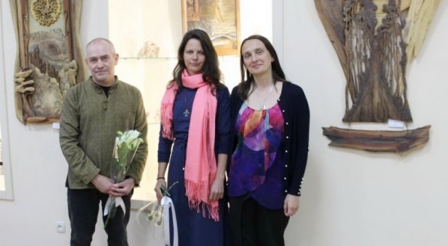 Авторы уникальных произведений. Фото Людмилы Науменко. Так назвали выставку в Крымском этнографическом музее, которая организована при поддержке Министерства культуры рес- публики, художники Андрей Браилов, Юлия Андреева и Елена Кокурина. Андрей Браилов профессионально занимается резьбой по дереву. Его работы привлекают естественной фактурой избранного материала в естественном цвете, без добавления красок. На выставках его произведения пользуются неизменным интересом. На этот раз он представил настенные панно, композиции, картины из разных пород крымских деревьев. Самобытная художница и психолог Юлия Андреева выбрала для своего творчества глину. Освоила сложную древнюю технику «выкладывания жгутами». Лепила оригинальные вазочки, аромалампы в виде уютных домиков, мечетей, колодцев и слонов. Потом увлеклась созданием персонажей, выразительно передающих национальный колорит. Мастерски делает причудливые тарелочки, сервизы для чайной церемонии. В экспозицию вошли керамические изделия, художественные композиции. Результатом уникального сотворчества Андрея и Юлии стало соединение двух разных техник - гравюры из дерева и керамики. Елена Кокурина стала заниматься керамикой по примеру Юлии Андреевой. Созданные ею человеческие фигурки так выразительны, что кажется - вот-вот оживут. Второе увлечение Елены валяние из шерсти. А ещё она пишет стихи. На выставке она представила керамические скульптурные композиции. Выставка экспонируется до 14 мая.