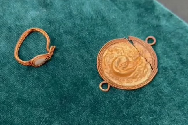 Напомним: уникальные экспонаты времён античности были найдены весной этого года в отвале грунта, который остался после того, как некрополь вскрывали экскаватором. Золотые украшения - серьга с полудрагоценным камнем, фрагменты ожерелья и подвеска с изображением Горгоны, а также бронзовые бусины с узорами, маленькая амулетница и фрагменты фибулы - были переданы специалистам для реставрации.