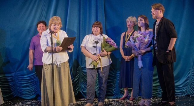Дипломы евпаторийцам вручает худрук Севастопольского ТЮЗа Людмила Оршанская. Фото Константина Пикулина. Четырьмя дипломами отмечен спектакль Крымского ТЮЗа на VIII Всероссийском фестивале театрального искусства для детей. Фестиваль проводит Севастопольский театр юного зрителя. В этом году на суд профессионального и детского жюри евпаторийские тюзовцы представили терапевтическую сказку «Принцесса, рыцарь и дракон» режиссёра Анастасии Пермяковой. И стали лауреатами в четырёх номинациях: «Королевское перо» - за создание оригинальной пьесы получили художественный руководитель театра Андрей Пермяков, исполнитель роли дракона Иннокентия Сергей Новиков признан «Королевским артистом» фестиваля, художник Ольга Долгова за лучшее художественное оформление спектакля стала «Королевским художником». Символично, что театральную династию Пермяковых, которая создала детский театр «Золотой ключик» (ныне Крымский ТЮЗ) и на протяжении 37 лет развивает театральное искусство в Крыму, признали «Королевской династией» именно в Год семьи. За высокое профессиональное мастерство и участие в фестивале «Сказочное королевство» Крымский государственный ТЮЗ также получил благодарственное письмо от губернатора Севастополя Михаила Развожаева. Проект «Всероссийский фестиваль театрального искусства для детей «Сказочное королевство» реализуется АНО «Сказочное королевство» совместно с Севастопольским ТЮЗом при грантовой поддержке Президентского фонда культурных ини- циатив.
