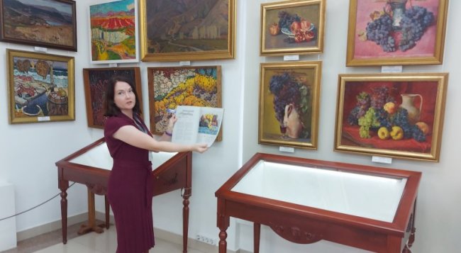 - Настоящей поэмой о крымском виноделии являются натюрморты Николая Барсамова, - отмечает завотделом музея, искусствовед Александра Кугушева. - Тяжёлые грозди винограда нескольких сортов оттеняют бархатистую кожицу персиков, матовую поверхность глиняного кувшина. Игра с фактурами позволяет насладиться материальностью каждого предмета. Ученик Барсамова Степан Мамчич обращается к выразительным средствам постимпрессионизма в изображении виноградников, погружает в культурное пространство с сакральной символикой виноградной лозы в мировой культуре. Графические произведения Владимира Благовещенского, выразительные севастопольские пейзажи и богатые дары моря запечатлели художники Май Чухланцев и Геннадий Арефьев. Тёплой уютностью крымских предгорий наполнен пейзаж «Тишина осенних долин» Октября Федотова. Яркие, насыщенные краски осеннего горного Крыма вплетаются в живописный «гобелен» Владимира Филатова.
