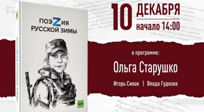 Фото из открытого источника. Презентация книги с таким названием состоится 10 декабря, в 14.00, в Большом конференц-зале Крымской республиканской универсальной научной библиотеки им. И. Я. Франко. Книги «Поэzия русской зимы» стала продолжением проекта, начатого RT в 2022 году выходом издания «ПоэZия русского лета». В новый сборник вошли произведения 27 авторов. Это Анна Ревякина, Александр Пелевин, Ольга Старушко, Герман Титов, Дмитрий Филиппов, Динара Керимова, Дмитрий Мельников, Влад Маленко, Анна Долгарева, Инна Кучерова и другие поэты, создающие новую русскую фронтовую поэзию. Предисловие к книге написал Захар Прилепин. В презентации примут участие поэтесса Ольга Старушко, солистка и координатор народного музыкального проекта современной патриотической песни «Крым-Россия! Навсегда!» Влада Гудкова и автор исполнитель Игорь Сивак.