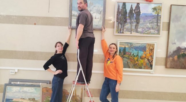 Сергей Филимонов, Олеся Лишаева и Ольга Алиева за развеской картин. Фото Галины Соколовой. Чем могут художники отметить знаменательную дату выдающегося коллеги-предшественника? Конечно же, выставкой, ему посвящённой. Так и сделали наши земляки, представившие солидную коллективную экспозицию в Республиканской библиотеке имени Франко к 175-летию со дня рождения выдающегося русского живописца XIX века Фёдора Васильева. У крымчан к Мастеру особое отношение. Больной туберкулёзом художник провёл в Ялте последние два года короткой жизни. Крымский период творчества, несмотря на тяжёлое заболевание, был плодотворным. Центральным произведением в эти годы стала большая картина «В Крымских горах», украсившая коллекцию Третьяковской галереи. На полуострове он написал значительные полотна, посвящённые природе средней полосы, среди которых «Утро», «Заброшенная мельница», «Болото в лесу. Осень» и «Мокрый луг», поразивший современников свежестью живописи, точностью воссоздания атмосферы, исходящим от него ощущением таинственного томления души. В написанных на полуострове картинах отразилась страстная романтическая возвышенность его души. Какой, по словам одного из самых авторитетных представителей реалистической школы второй половины XIX века, художественного критика Ивана Крамского, не было «ни у одного из наших пейзажистов». Его земная жизнь закончилась в 23 года. Упокоение нашёл на ялтинском Поликуровском кладбище, откуда открывается живописный вид на нежно любимую им природу. В памятной экспозиции «Лирический пейзаж» представлено более 170 живописных полотен и графических картин восьмидесяти авторов из Симферополя, Алушты, Ялты, Севастополя, Керчи, Феодосии, Евпатории, Бахчисарая и Судака. - Это вторая выставка посвящённого памяти Фёдора Васильева проекта,- отмечает инициатор проекта Сергей Филимонов. - Она почти в три раза масштабнее прошлогодней, что говорит об активности крымских мастеров изобразительного искусства, следующих традициям именитых предшественников, и стремящихся сохранить и преумножить достижения именитых предшественников. Выставочный проект осуществляется Крымским региональным отделением Союза художников России. Организаторы планируют проводить выставку памяти Фёдора Васильева ежегодно. Картины - на виду, общение с их авторами доступно всем. В тени остаются те, от чьего умения представить работы коллег зависит восприятие выставки. Труд экспозиционеров можно оценить до 26 марта.